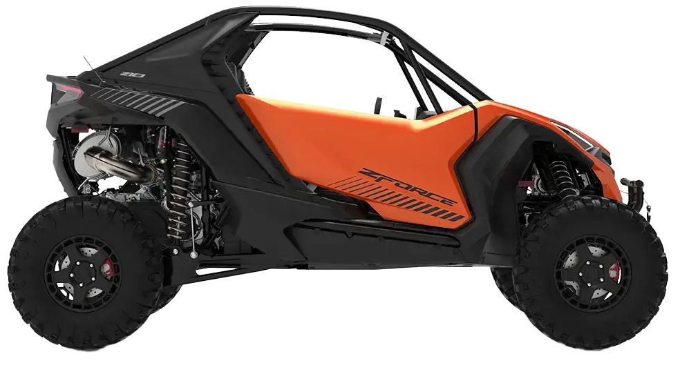 O ZFORCE Z10 TURBO é a escolha perfeita para quem busca aventura e adrenalina. Equipado com um potente motor turbo de três cilindros, transmissão OmniDrive™ de transições suaves e tecnologia avançada como o display RideSync™ de 12,3” com Apple CarPlay, ele combina desempenho e conectividade. Enfrente os terrenos mais desafiadores com os amortecedores FOX® QSE ajustáveis diretamente no volante ou pelo aplicativo FOX. Este é o UTV que redefine o conceito de emoção e controle.